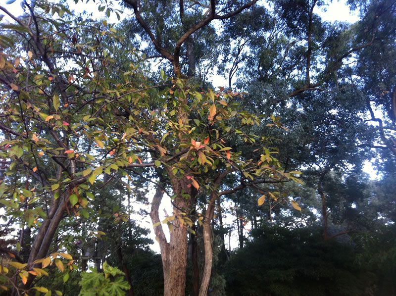 毎年、イースターの頃には天気もすっかり秋めいてきます。朝の気温が10度を下回る日が増えてきて、木々の葉っぱも色づいています。我が家の敷地に生えているのはユーカリがほとんどで、葉っぱの色は一年中同じで季節感なしですけど、色づく木もあるのですよ。
